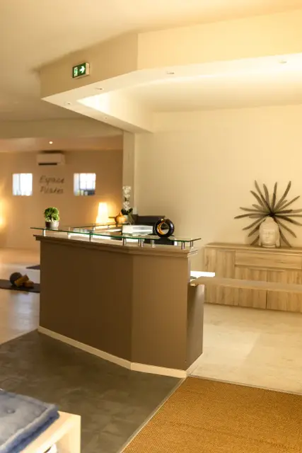Où se trouve les vestiaires homme et femme, et le coin salon pour prolonger votre moment à vous avec thé ou café